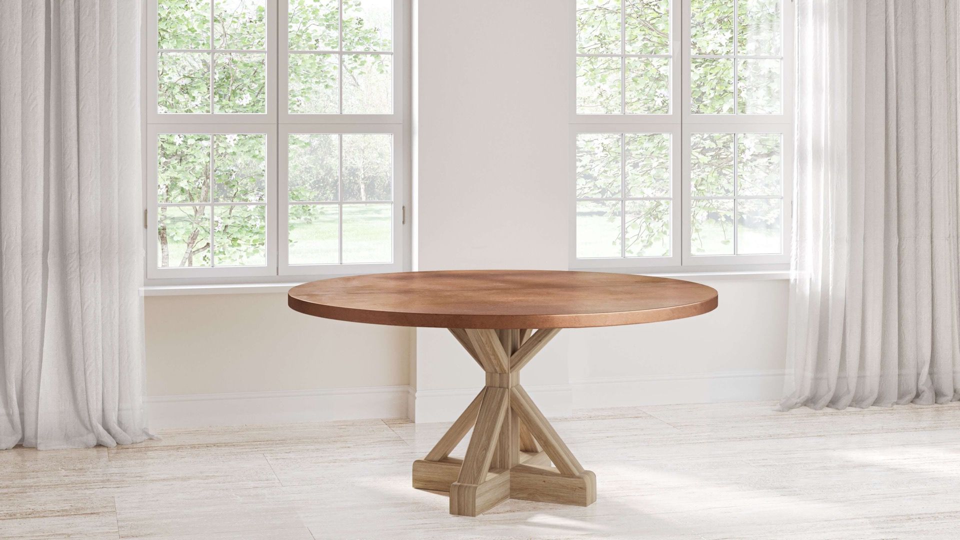 French Trestle Round Copper Dining Table